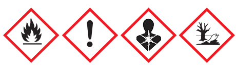 Wysoce łatwopalna ciecz i pary. Działa drażniąco na skórę. Może wywoływać uczucie senności lub zawroty głowy.  Połknięcie i dostanie się przez drogi oddechowe może grozić śmiercią. Działa bardzo toksycznie na organizmy wodne, powodując długotrwałe skutki. Chronić przed dziećmi. Przechowywać z dala od źródeł ciepła, gorących powierzchni, źródeł iskrzenia, otwartego ognia i innych źródeł zapłonu. Nie palić. Unikać wdychania pyłu/dymu/gazu/mgły/par/rozpylonej cieczy. Dokładnie umyć ręce po użyciu. Unikać uwolnienia do środowiska. W PRZYPADKU POŁKNIĘCIA: natychmiast skontaktować się z OŚRODKIEM ZATRUĆ/lekarzem. W PRZYPADKU KONTAKTU ZE SKÓRĄ: umyć dużą ilością wody z mydłem. W PRZYPADKU DOSTANIA SIĘ DO DRÓG ODDECHOWYCH: wyprowadzić lub wynieść poszkodowanego na świeże powietrze i zapewnić mu warunki do swobodnego oddychania. NIE wywoływać wymiotów. Przechowywać w dobrze wentylowanym miejscu. Przechowywać pojemnik szczelnie zamknięty. Zawartość/pojemnik usuwać do punktu zbiórki odpadów niebezpiecznych lub postępować zgodnie z obowiązującymi przepisami.